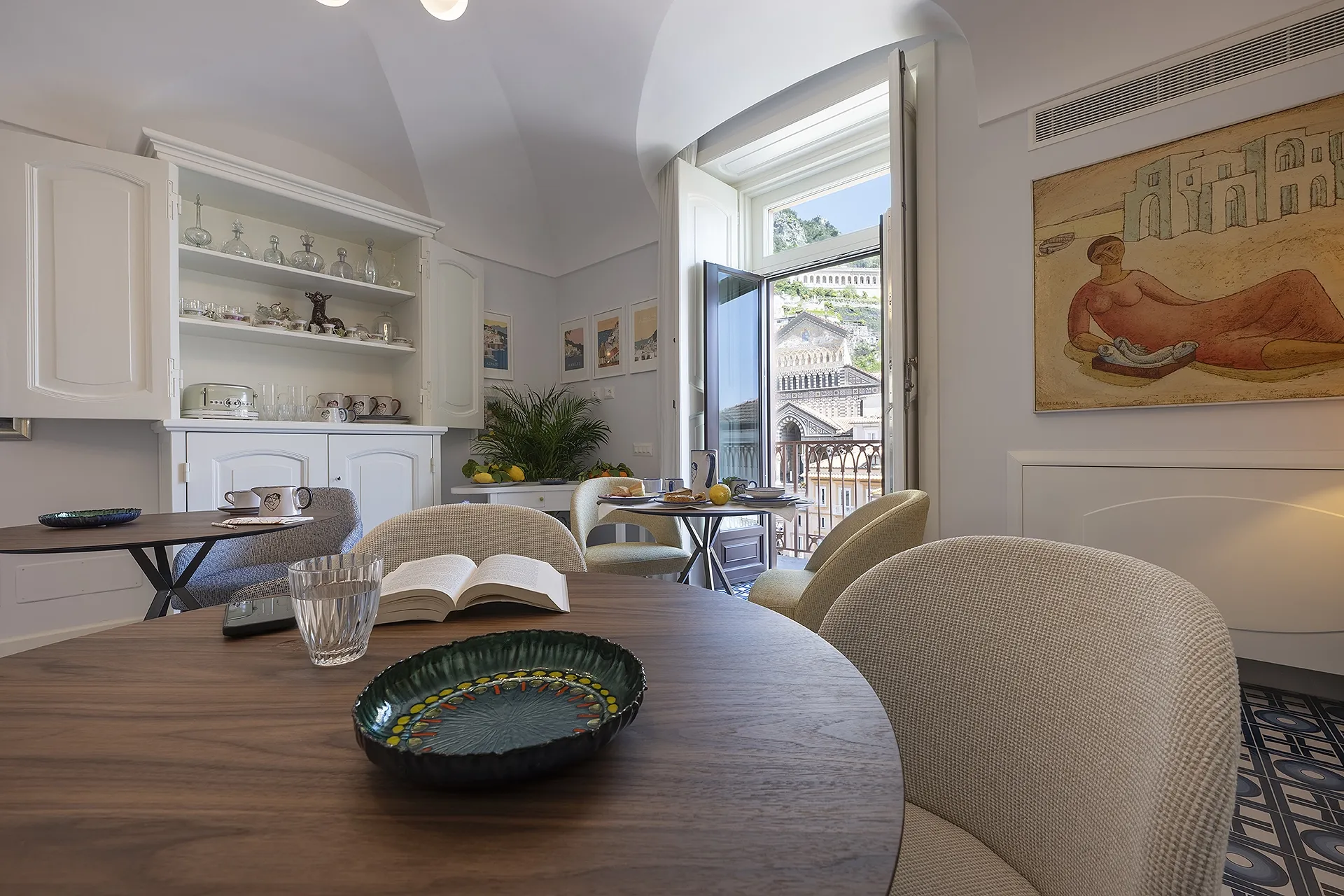 Upon arrival, you will be welcomed in a small lobby with a terrace overlooking St. Andrew’s Cathedral, a view that will enchant you from the very first moment. The sophisticated and elegantly furnished interior still retains its old-world charm and is furnished with Italian-designed tables and armchairs, paintings, and antiques. Our breakfast is served in this communal space, where the quality of the products and attention to detail will make you feel right at home.